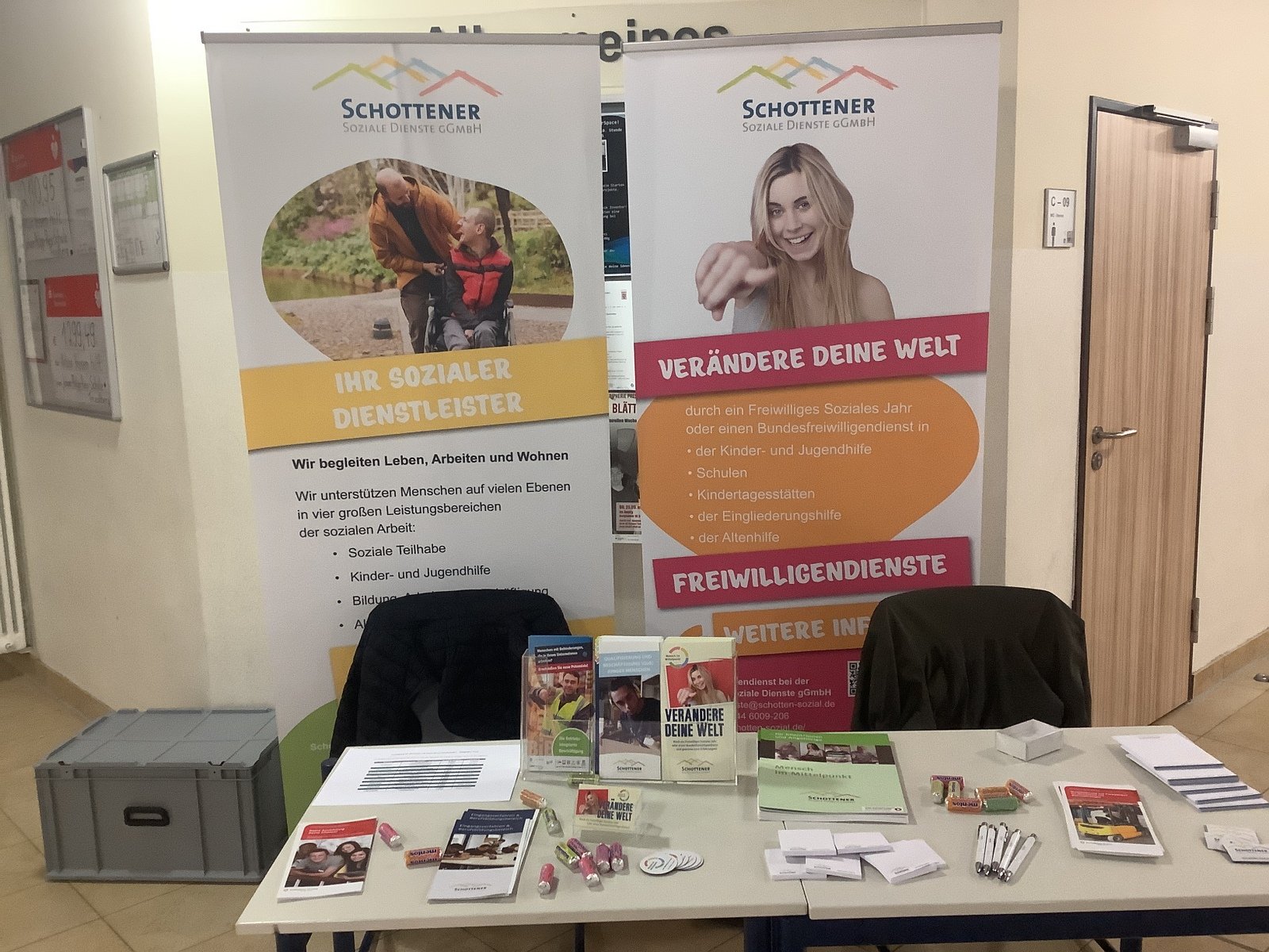 Stefan Dietz, Bereichsleiter Teilhabe am Arbeitsleben und Werkstattleiter des AKTIV Werk Wetterau, hob ebenfalls die Bedeutung der Berufsmesse hervor: „Der Markt der Möglichkeiten ist für die Besucher eine tolle Gelegenheit sich über den Übergang Schule – Beruf zu informieren und für die Anbieter sich kennenzulernen und zu vernetzen.“ Auch für Sebastian Pein, Teamleitung Unterstützte Beschäftigung bei den Schottener Sozialen Dienste, ist die Berufsmesse die beste Art ins Gespräch zu kommen: „Wir sprechen gerne mit den Menschen, weil es da oft Unklarheiten und Unsicherheiten gibt, gerade bei den Eltern. Vor allem interessieren sich die Besucher bisher für unseren Berufsbildungs- und Werkstattbereich.“