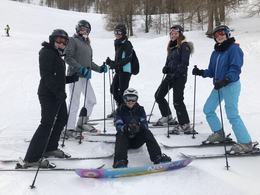 Besonders in den Anfängergruppen im Ski- und Snowboardfahren wurden beeindruckende Leistungen gezeigt. Beginnend mit den ersten Schritten auf den rutschigen Brettern, gefolgt von vielen Übungen auf einfachen Pisten ging es am sechsten Tag durch das gesamte Skigebiet. Da wurde Durchhaltevermögen gefordert und Lernen in seiner effektivsten Art gezeigt: Losfahren – Hinfallen – Aufstehen – Schnee abklopfen – Weiterfahren – und immer weiter. Eine Übung, die auch in der Vorbereitung der anstehenden Abschlussprüfungen ein hilfreiches Muster aufzeigt.