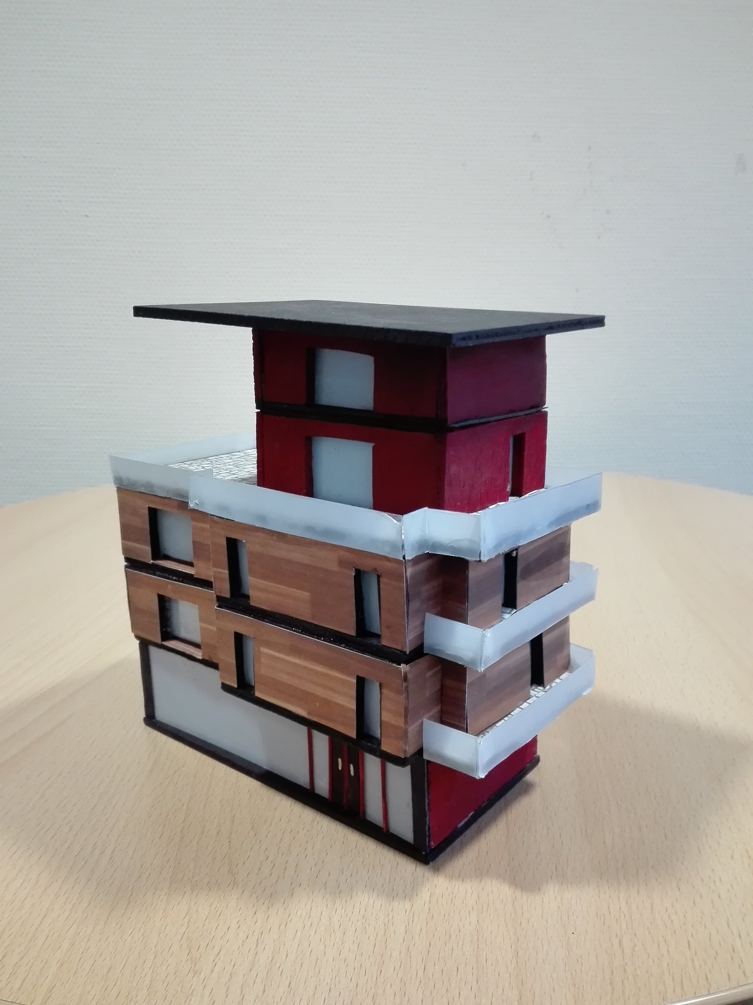 Für das Architekturprojekt erhielten die Schüler die Aufgabenstellung, ein Wohngebäude mit fünf Geschossen zu entwerfen, wobei das Erdgeschoss als Café oder kleines Ladengeschäft genutzt werden sollte. Weitere Planungsvorgaben waren eine PKW-Hochgarage, kleine Studentenappartements, 2-3 Zimmer-Wohnungen sowie eine Maisonette-Wohnung. Zu den Anforderungen der Konzipierung gehörten Grundrisse aller Geschosse im Maßstab 1:100 und eine Farb- und Materialcollage für die Nutzung des Erdgeschosses. Zum Abschluss der kreativen Umsetzung fertigten die Gestaltungsschüler schließlich ein Architekturmodell im Maßstab 1:100 an.