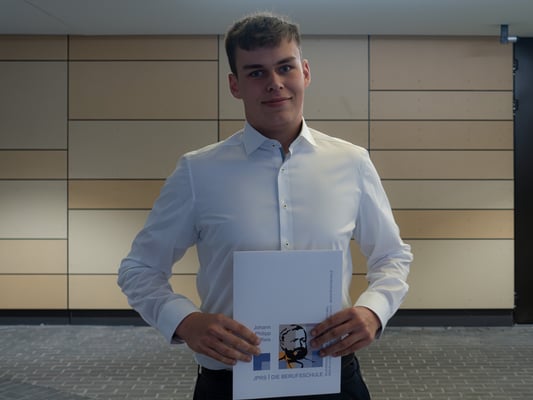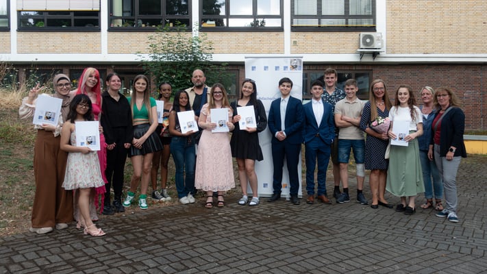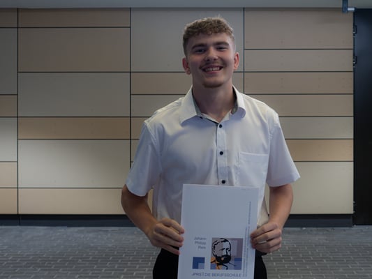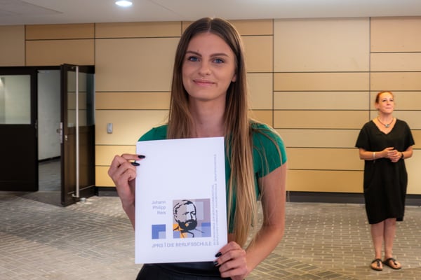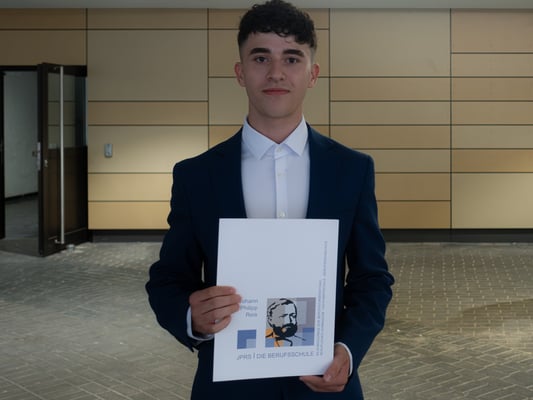 Am 19.7.23 erhielten 36 erfolgreiche Absolventinnen und Absolventen der Berufsfachschule im überdachten Schulhof der JPRS ihre Abschlusszeugnisse. Zur feierlichen Verabschiedung fanden sich neben den Schülerinnen und Schüler auch die Schulleitung, die unterrichtenden Lehrkräfte und Eltern ein. JPRS-Schulleiter Nick Szymanski und Mirko Wolf, Abteilungsleiter der Berufsfachschule, begrüßten herzlich die Anwesenden und gratulierten den jungen Menschen zum Erwerb des Realschulabschlusses.