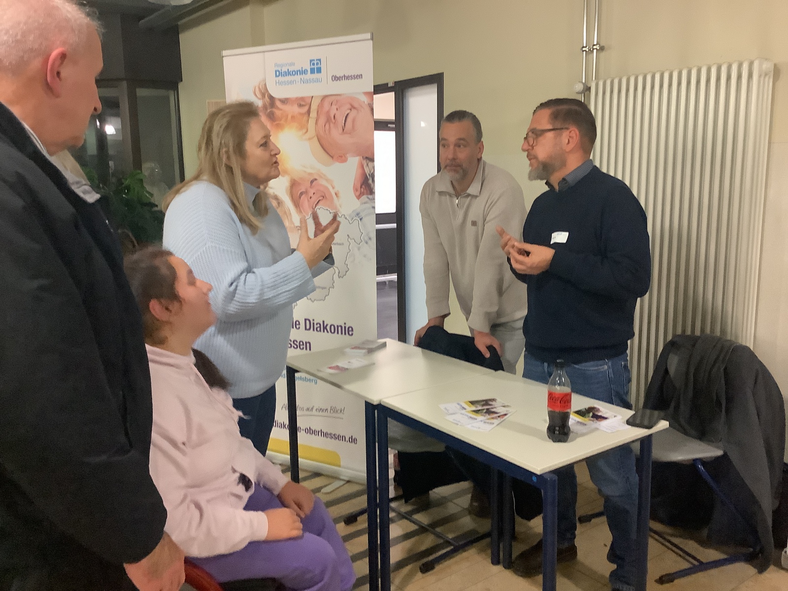 Stefan Dietz, Bereichsleiter Teilhabe am Arbeitsleben und Werkstattleiter des AKTIV Werk Wetterau, hob ebenfalls die Bedeutung der Berufsmesse hervor: „Der Markt der Möglichkeiten ist für die Besucher eine tolle Gelegenheit sich über den Übergang Schule – Beruf zu informieren und für die Anbieter sich kennenzulernen und zu vernetzen.“ Auch für Sebastian Pein, Teamleitung Unterstützte Beschäftigung bei den Schottener Sozialen Dienste, ist die Berufsmesse die beste Art ins Gespräch zu kommen: „Wir sprechen gerne mit den Menschen, weil es da oft Unklarheiten und Unsicherheiten gibt, gerade bei den Eltern. Vor allem interessieren sich die Besucher bisher für unseren Berufsbildungs- und Werkstattbereich.“
