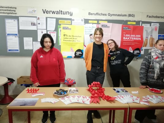 Anlässlich des Welt-Aids-Tages am 1.12.22 stand an der Johann-Philipp-Reis-Schule (JPRS) in Friedberg in den Berufsfachschulklassen 10BFb und 10BFc ein Aufklärungsprojekt rund um das Thema HIV im Fokus. Das Projekt wurde im naturwissenschaftlichen Unterricht von Lehrerin Eileen Jost durchgeführt. Ziel war es nicht nur, das eigene Wissen und eventuell vorhandene Vorurteile zu hinterfragen, sondern auch am Welt-Aids-Tag im Foyer der Schule das Erlernte an andere weiterzugeben – ganz nach dem...