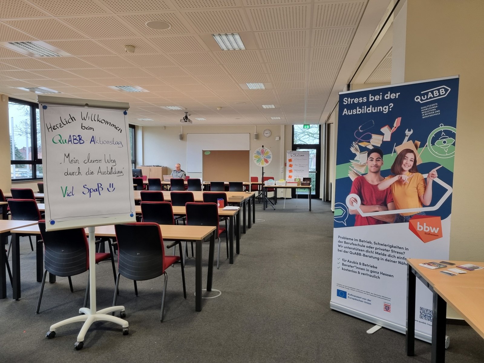 Am 11.3.24 fand an der Johann-Philipp-Reis-Schule (JPRS) in Friedberg der QuABB-Aktionstag für die Auszubildenden „Mein cleverer Weg durch die Ausbildung“ statt. QuABB steht für das hessische Landesprogramm „Qualifizierte Ausbildungsbegleitung in Betrieb und Berufsschule“. Den Aktionstag organisierten Lea Kehrbaum, QuaBB-Ausbildungsbegleiterin der JPRS und Tim Lautenschläger, QuaBB-Ausbildungsbegleiter der Beruflichen Schule Oberhessen. Bei der Vorbereitung wurden sie von Schulleiter...