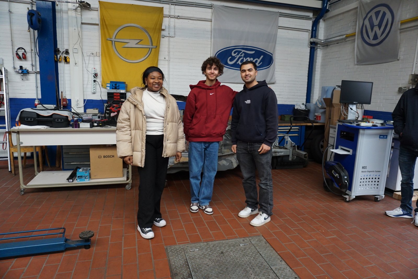 Während in Lyon der Karosseriebau im Fokus stand, drehte sich in Friedberg alles um die Elektronik. Das Projekt „Bau einer Simulationsbox für die CAN- und LIN-Bus Vernetzung im Fahrzeug“ startete am Dienstag in der KFZ-Werkstatt. Herr Diehl, Herr Nockemann und Herr Vicente vermittelten den Jugendlichen zunächst die theoretischen Inhalte zum Thema „Vernetzung im KFZ“. Dann unterstützten die Lehrkräfte die Schüler dabei, einen Schaltplan der Vernetzung von Komfort- und Antriebssystemen eines VW-Golfs 5 zu analysieren. Am Nachmittag unternahm die Gruppe eine Exkursion zum Technikmuseum Sinsheim, in deren Mittelpunkt eine Museumsrally zu den herausragendsten Exponaten der französischen und deutschen Automobilgeschichte stand.