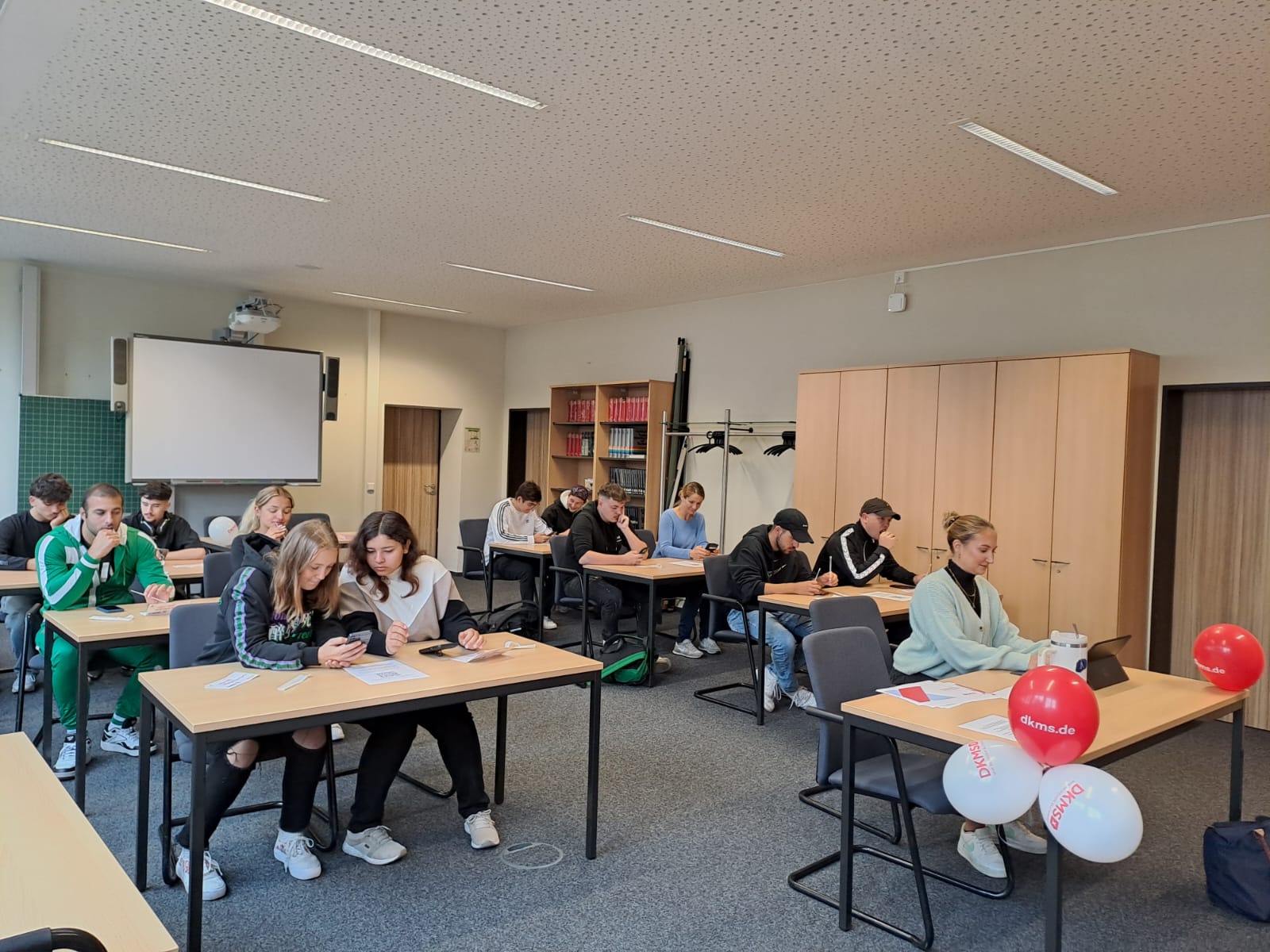 Am 12.9.24 fand zum ersten Mal seit 2018 wieder eine DKMS-Registrierungsaktion an der Johann-Philipp-Reis-Schule (JPRS) in Friedberg statt. Die DKMS ist eine gemeinnützige Organisation für die Registrierung von Stammzellspendern. Ziel des Vereins ist es, möglichst viele potenzielle Spender in ihrer Datei aufzunehmen, denn jede Stammzellspende kann das Leben eines Menschen, der an Leukämie (Blutkrebs) erkrankt ist, retten. Die Erfolgsbilanz der JPRS-Aktion: 144 Typisierungen von Schülerinnen und Schülern. Zudem spendete die Schule 346,43 Euro an die DKMS, die durch einen Kuchenbasar im Foyer der Schule zusammenkamen. Die Kuchen hatten Lehrerinnen und Lehrer der JPRS gebacken und gespendet.