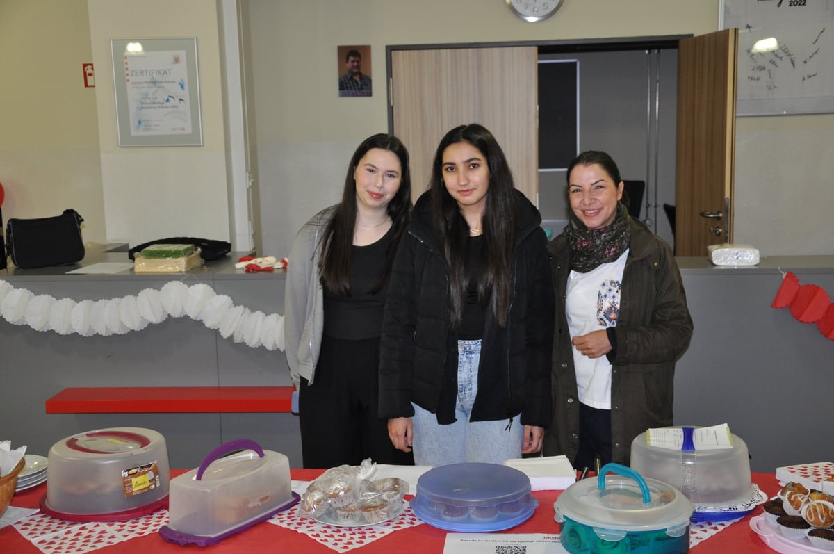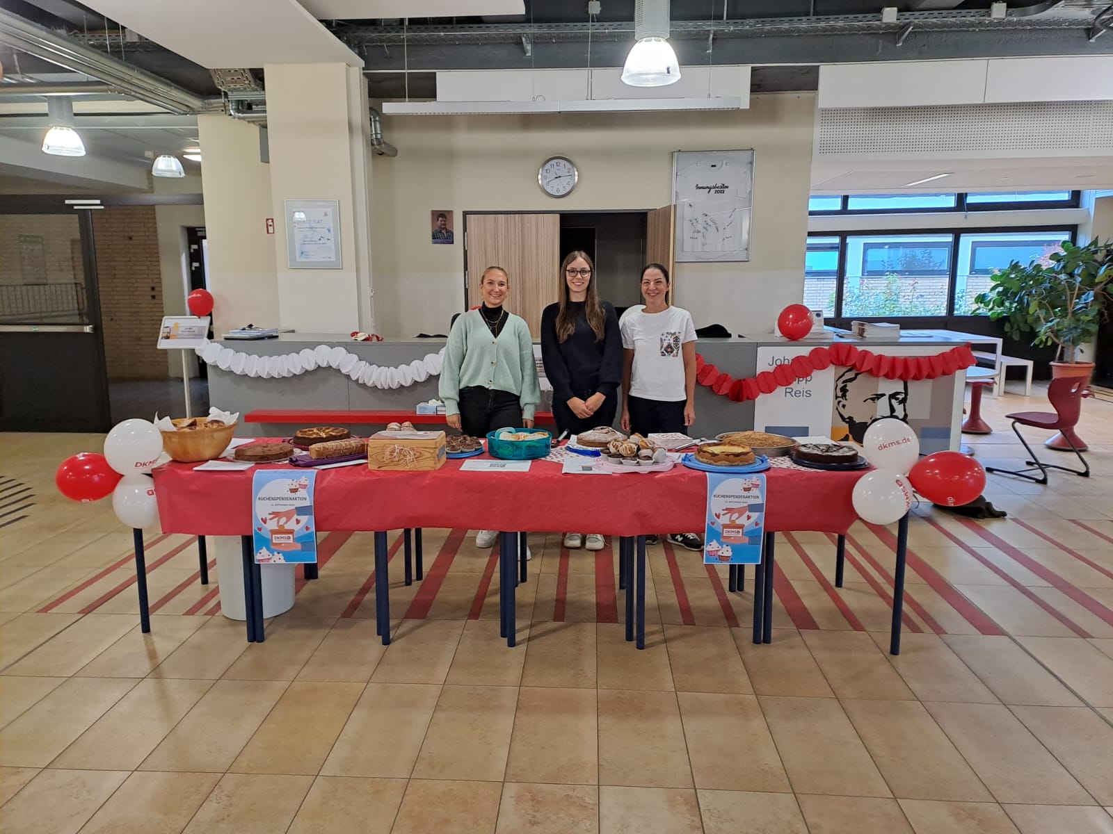 Nach der Corona-Pause erfolgte nun der Neustart. Der Schulsanitätsdienst unter der Leitung der Lehrerinnen Gülsah Albayrak und Cornelia Fritz organisierte die Typisierungsaktion und den Kuchenbasar. An der Aktion beteiligten sich die Schülerinnen Sahra Abbasi, Marwa Habash, Amelie Klamer und Ara Sulaiman, die die 12. Jahrgangsstufe des Beruflichen Gymnasiums besuchen. Die Aktion wurde zudem von Verwaltungsleiterin Claudia Hahn, den Sozial-arbeiterinnen Daniela Völker und Anna Krüger und der Lehrerin Valeria Peuchert unterstützt.