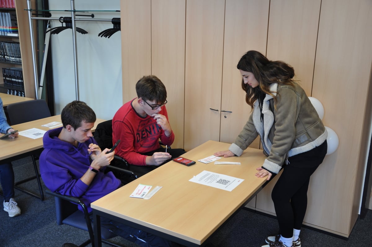 Nach den Vorträgen entschieden sich 144 JPRS-Schüler für die Typisierung und suchten die Räume auf, in denen der Schulsanitätsdienst alles für die Aktion vorbereitet hatte. Die DKMS-Registrierung erfolgte per Smartphone und QR-Code. Für die Typisierung entnahmen die Schüler mit Wattestäbchen Speichelproben aus dem Mundraum. Der Schulsanitätsdienst unterstützte sie dabei, Herr Pomper und Herr Caracciola standen bei Fragen mit Rat und Tat zur Seite.