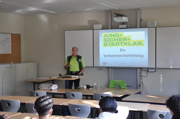 Am Aktionstag Jung – Sicher – Startklar beteiligten sich Auszubildende der Berufsfelder Fahrzeugtechnik, Holztechnik, Holz- und Bautenschützer sowie Fachangestellte für Bäderbetriebe. Mit am Start waren weiterhin Schülerinnen und Schüler der Schulformen Berufsfachschule und Bildungsgänge zur Berufsvorbereitung. Die Jugendlichen zeigten sich in den Vorträgen sehr interessiert und stellten viele Fragen zu den Themen Fahrsicherheit, Alkoholfahrt, Gefahrenerkennung usw. Auf großes Interesse stießen die Mitmach-Angebote der Verkehrswacht und ihrer Partner wie der PKW-Fahrsimulator oder der Überschlagsimulator.