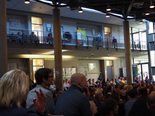 Herr Norwig informierte ausführlich über das Konzept der Schule, das sich im Austausch mit allen Beteiligten stetig zu verbessern sucht. Die Richtsberg-Gesamtschule ist eine zertifizierte KulturSchule des Landes Hessen, in der die Kinder sich intensiv mit bildender Kunst, Literatur, Theater, Musik und Tanz beschäftigen. Weiterhin im Fokus stehen Konzepte wie Lernen lernen, soziales Lernen sowie die Schule als ein Erlebnis- und Selbsterfahrungsort. Herr Norwig legte die Unterschiede zu einem herkömmlichen Schulsystem dar, beschrieb das Engagement des Kollegiums und die Verbindlichkeit auf Seiten der Schülerinnen und Schüler.