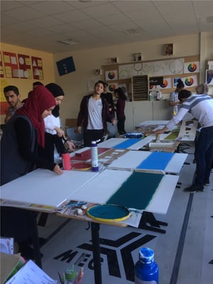 Im Praxisbereich Gestaltung lernen die InteA-Schülerinnen und Schüler verschiedene Wandtechniken, etwa Schabloniertechnik und Wickeltechnick.