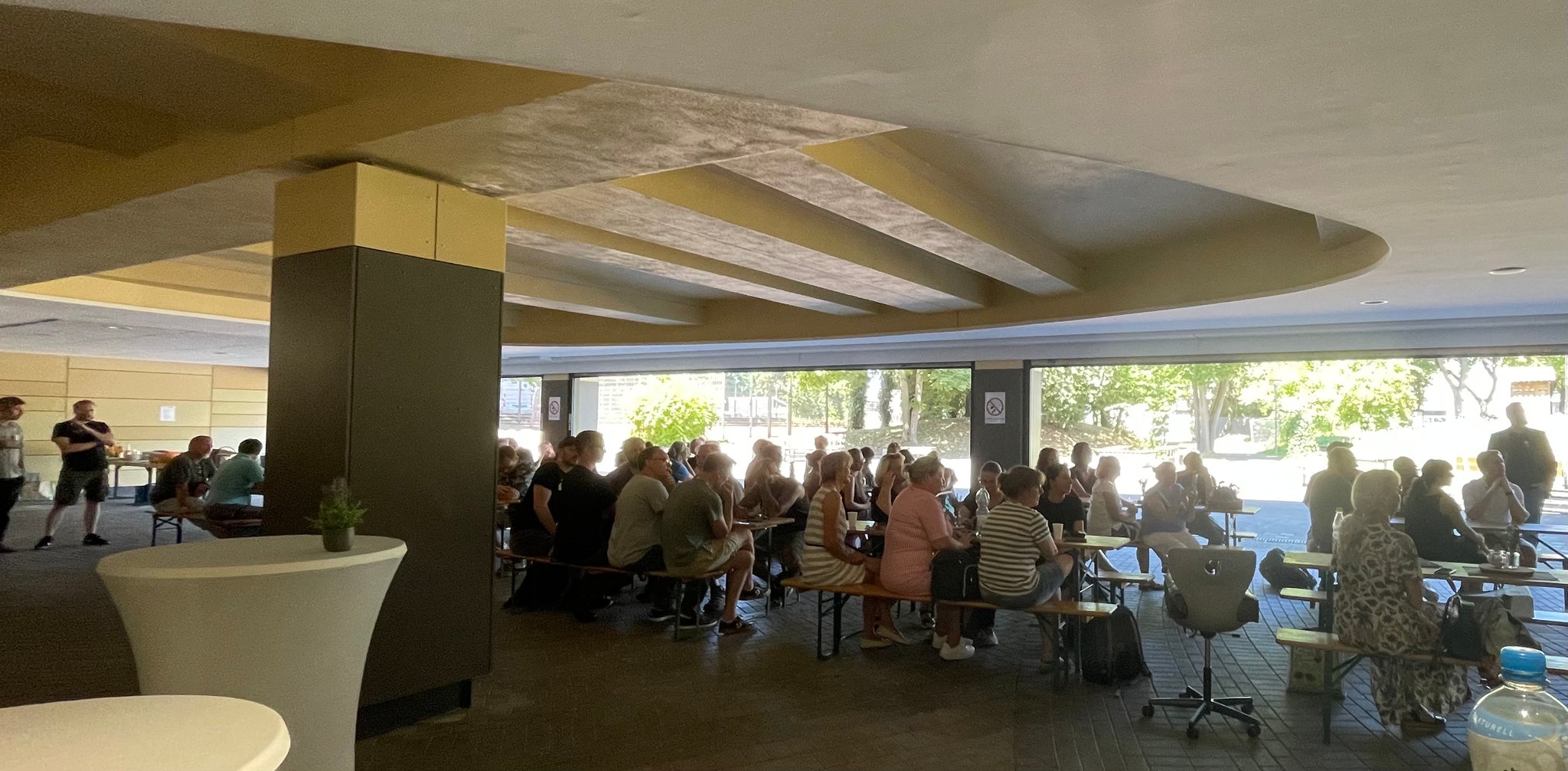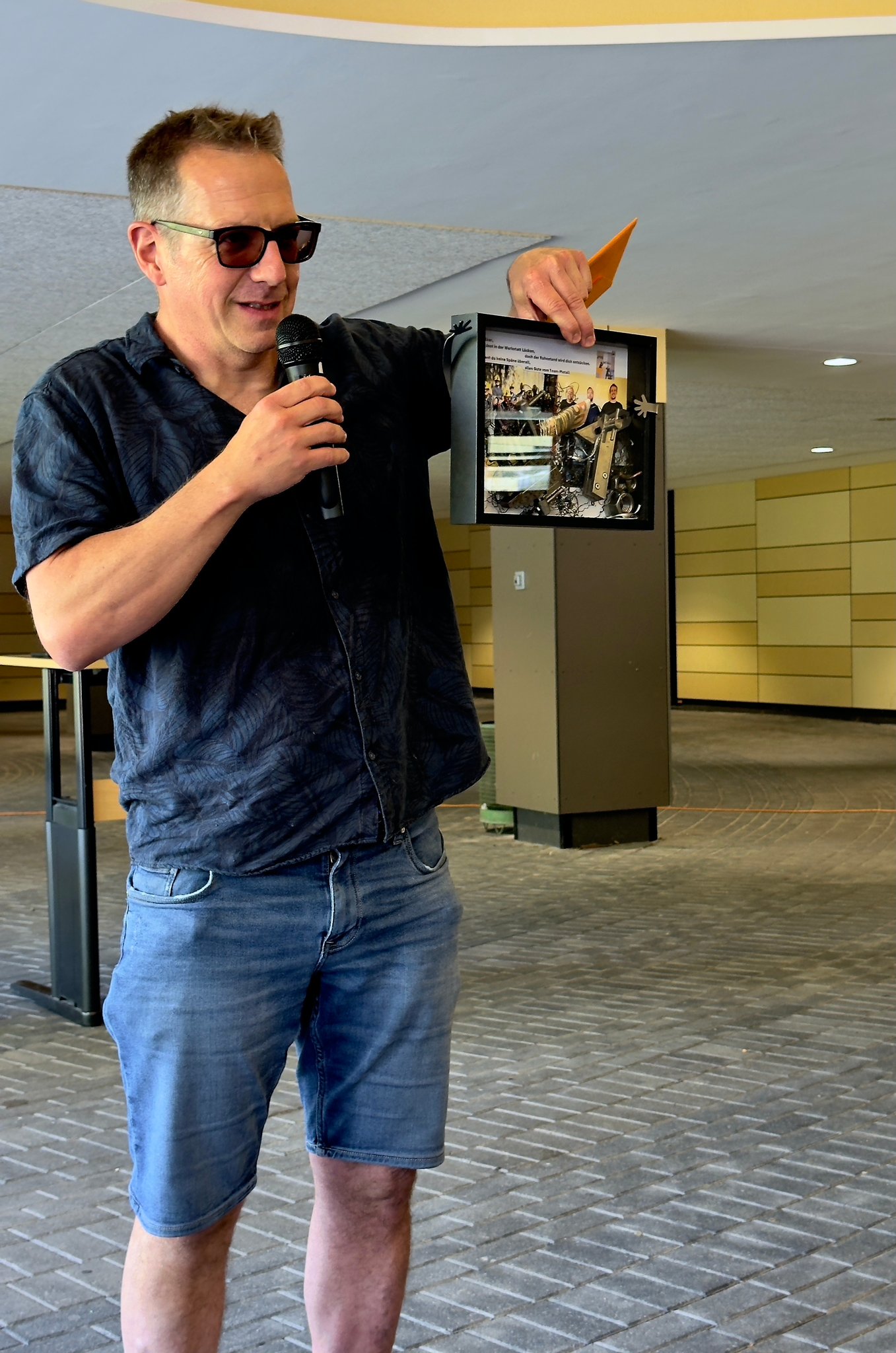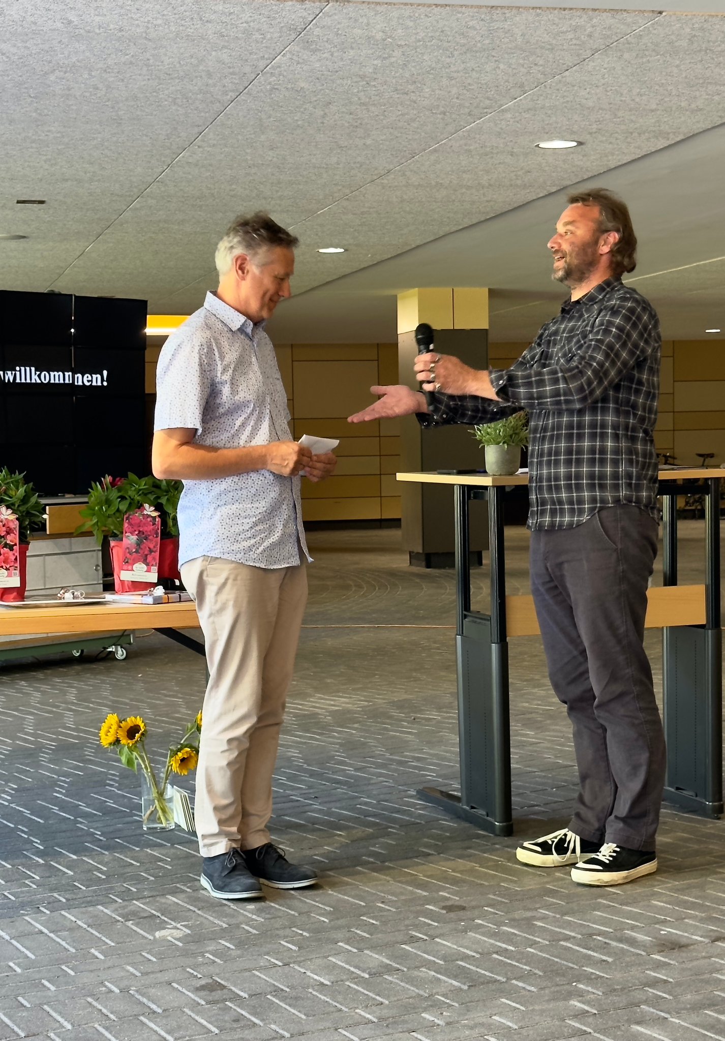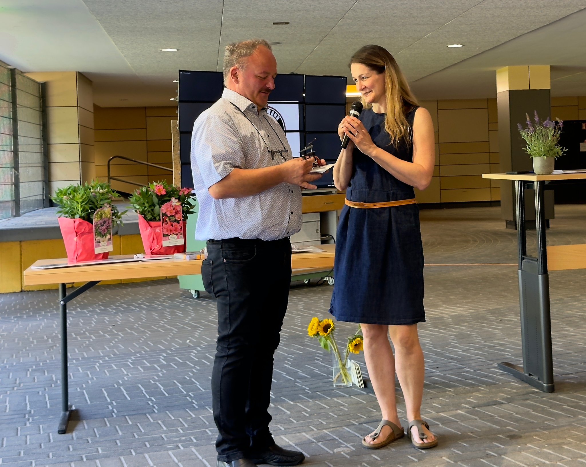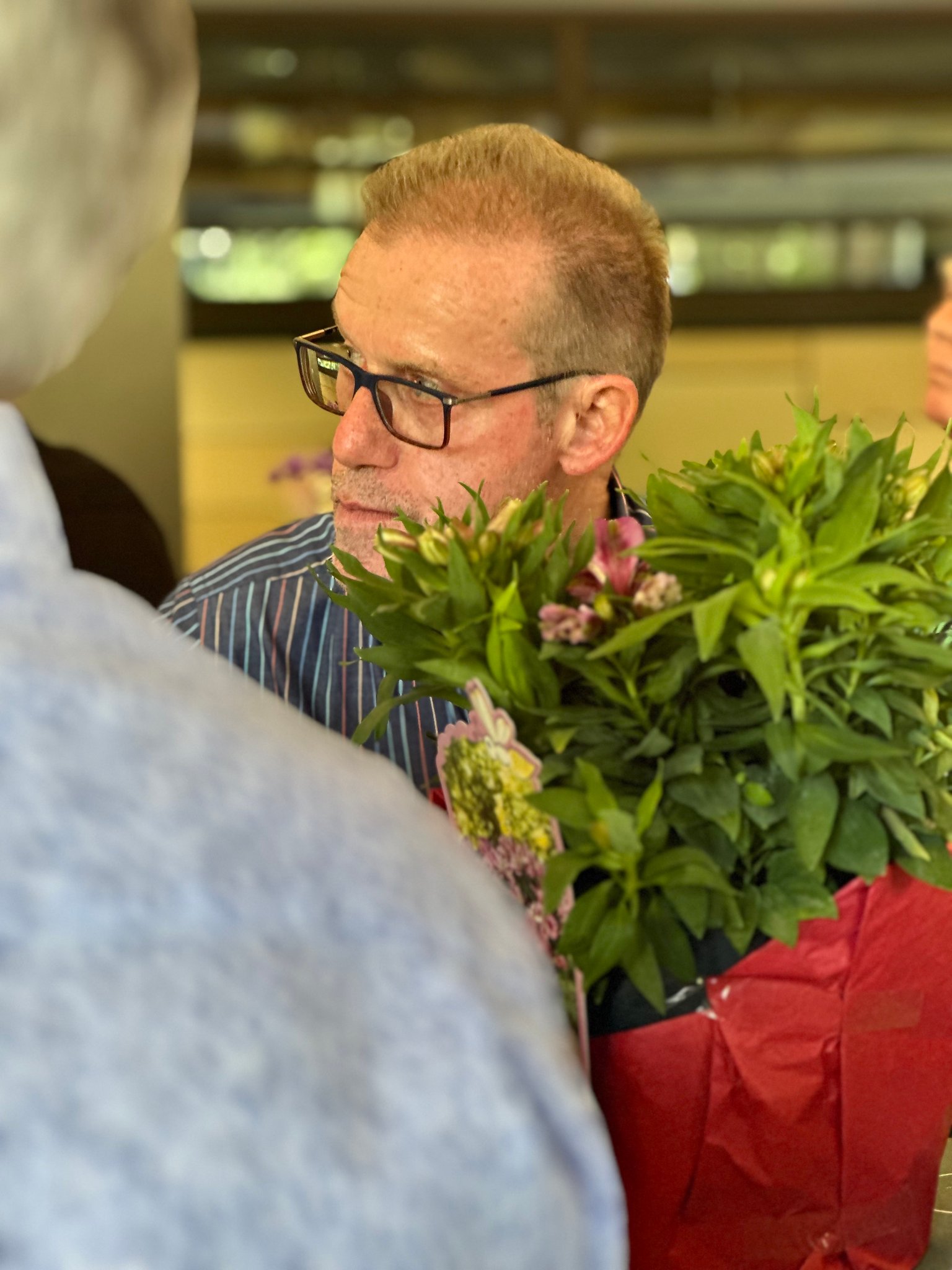 Am 1.7.25 traf sich die Schulgemeinde der Johann-Philipp-Reis-Schule zur Verabschiedungskonferenz auf dem unteren Schulhof. Anlass war die Verabschiedung des Kollegen Horst-Jürgen Wohlgemuth in den Ruhestand, des Kollegen Michel Schwob wegen Versetzung an eine andere Schule und des Kollegen Frederik Weiß aus der Schulleitung. Weiterhin wurde Inge Geller für ihr 25-jähriges Jubiläum als Schulsekretärin geehrt. Die Fotos zeigen Eindrücke von der schönen Abschiedsfeier auf dem Schulhof. Schulleiter Nick Szymanski, Personalratsvorsitzende Nathalie Reinke und viele Kolleginnen und Kollegen hielten Dankes- und Abschiedsreden. Sie würdigten das jahrelange Engagement der Geehrten für ihre Schule und überreichten ihnen als Dankeschön Blumensträuße und Geschenke. Diese bedankten sich herzlich beim Kollegium, das zahlreich erschienen war. Im Anschluss folgte ein geselliges Beisammensein mit anregenden Gesprächen bis in den späten Nachmittag. Für die Verköstigung sorgten die zukünftigen Ruheständler mit Getränken und leckeren Salaten. Holger Buss von der schuleigenen Fleischerei verwöhnte die Kolleginnen und Kollegen mit Steaks und Würstchen vom Grill.