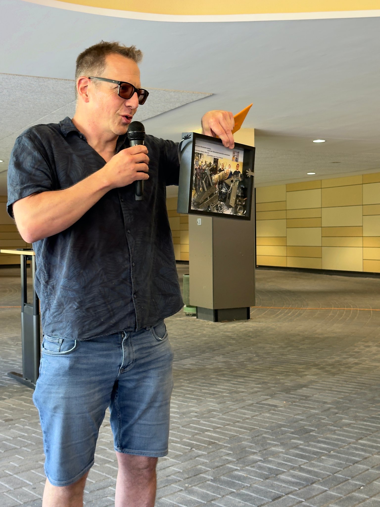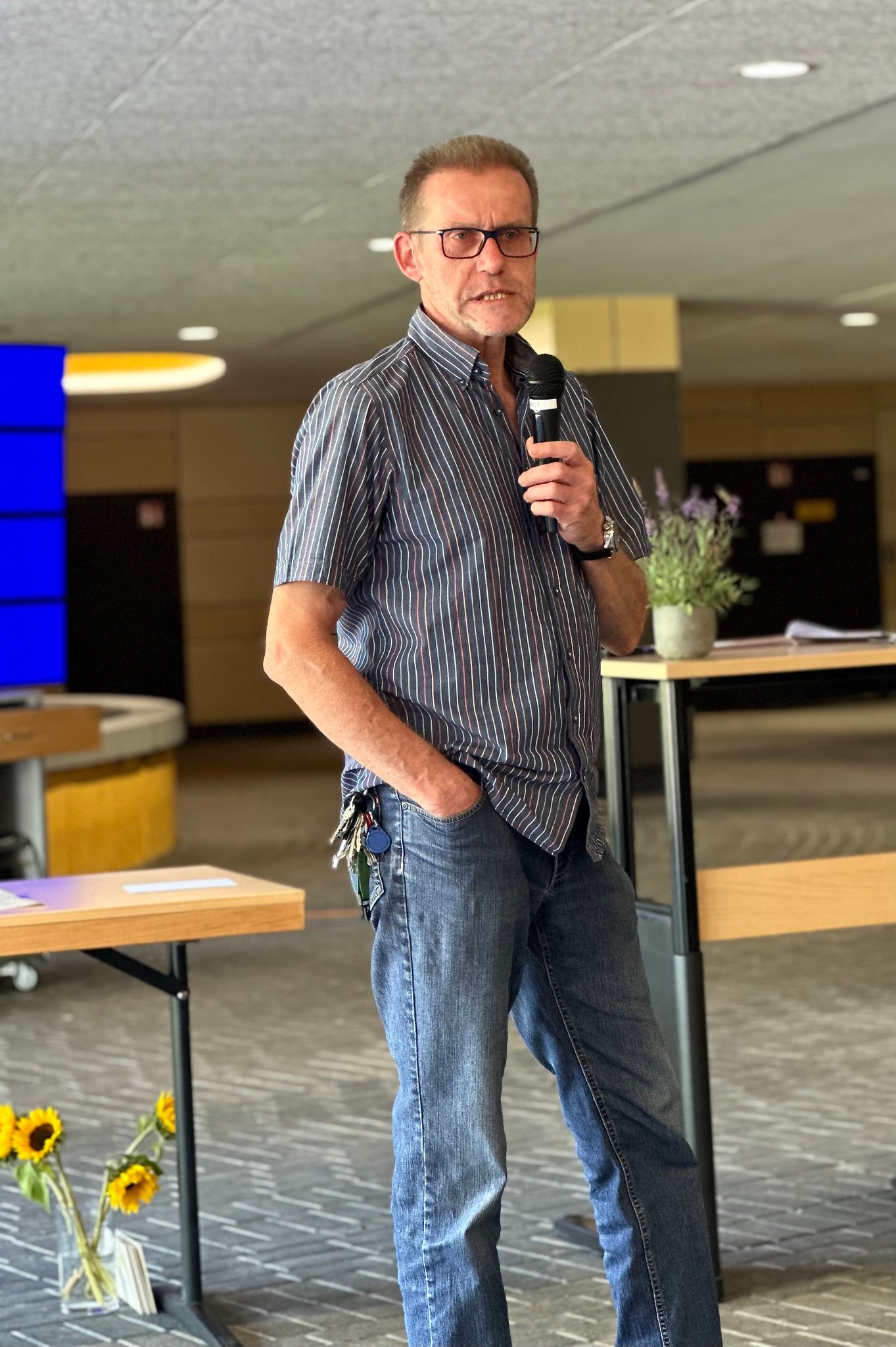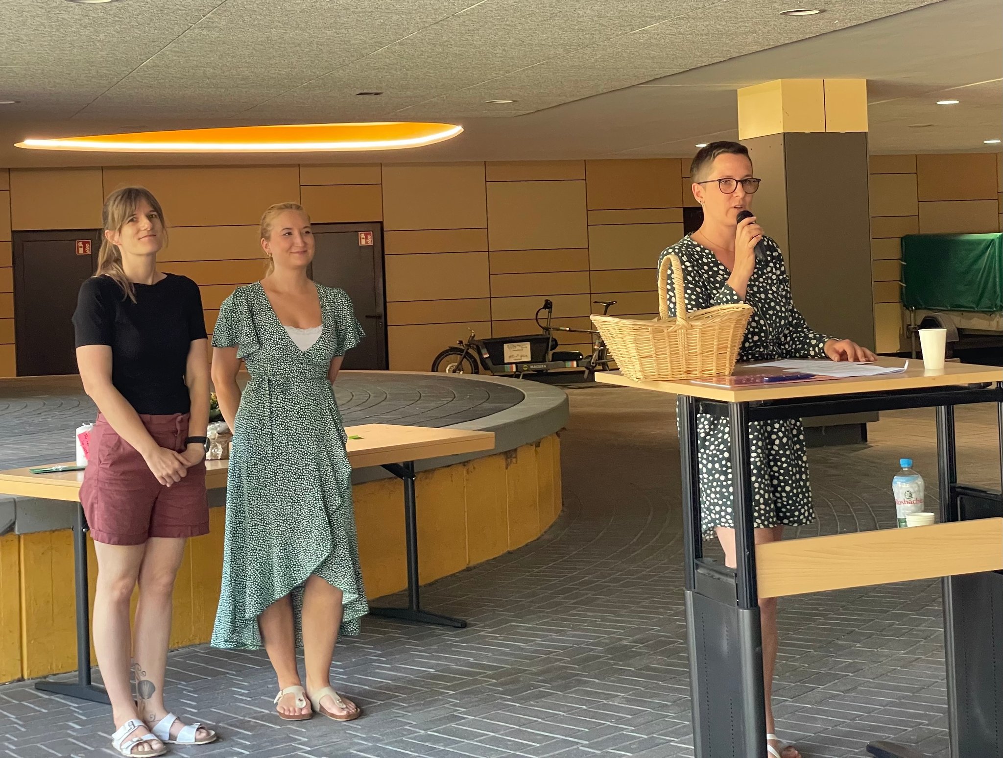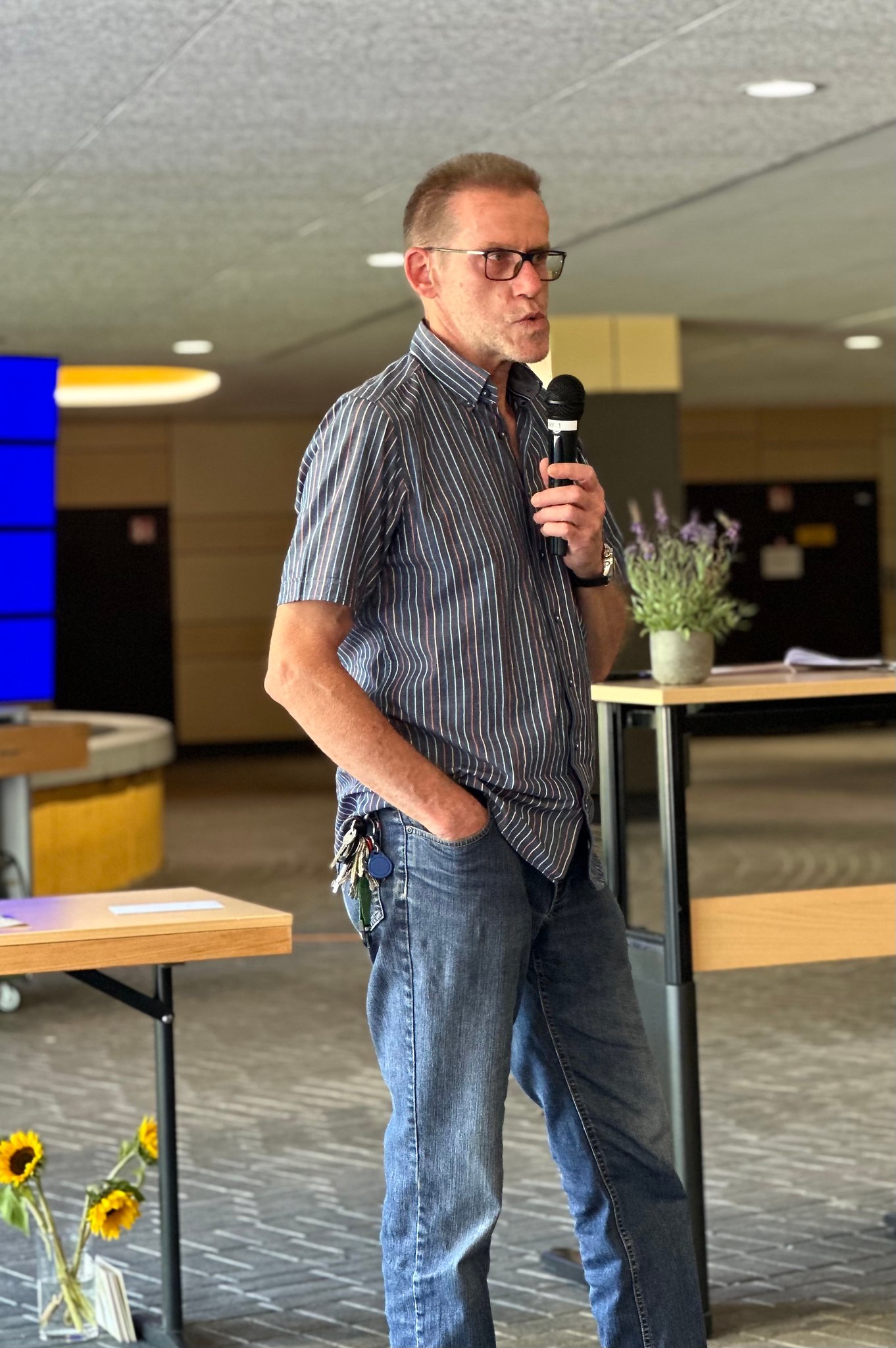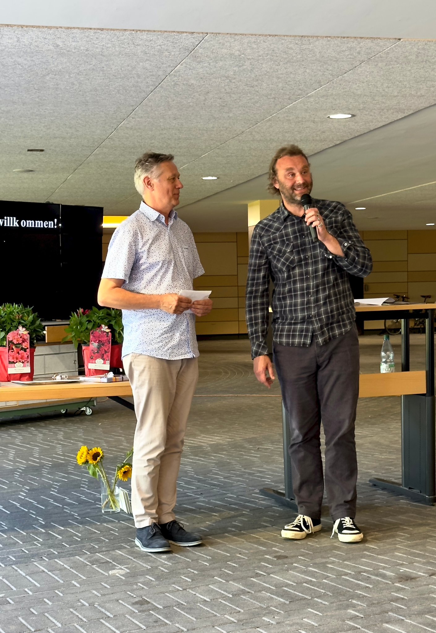 Am 1.7.25 traf sich die Schulgemeinde der Johann-Philipp-Reis-Schule zur Verabschiedungskonferenz auf dem unteren Schulhof. Anlass war die Verabschiedung des Kollegen Horst-Jürgen Wohlgemuth in den Ruhestand, des Kollegen Michel Schwob wegen Versetzung an eine andere Schule und des Kollegen Frederik Weiß aus der Schulleitung. Weiterhin wurde Inge Geller für ihr 25-jähriges Jubiläum als Schulsekretärin geehrt. Die Fotos zeigen Eindrücke von der schönen Abschiedsfeier auf dem Schulhof. Schulleiter Nick Szymanski, Personalratsvorsitzende Nathalie Reinke und viele Kolleginnen und Kollegen hielten Dankes- und Abschiedsreden. Sie würdigten das jahrelange Engagement der Geehrten für ihre Schule und überreichten ihnen als Dankeschön Blumensträuße und Geschenke. Diese bedankten sich herzlich beim Kollegium, das zahlreich erschienen war. Im Anschluss folgte ein geselliges Beisammensein mit anregenden Gesprächen bis in den späten Nachmittag. Für die Verköstigung sorgten die zukünftigen Ruheständler mit Getränken und leckeren Salaten. Holger Buss von der schuleigenen Fleischerei verwöhnte die Kolleginnen und Kollegen mit Steaks und Würstchen vom Grill.